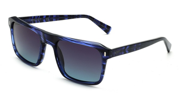 Bold rectangular sunglasses in blue marble with gradient lenses for a contemporary urban look.